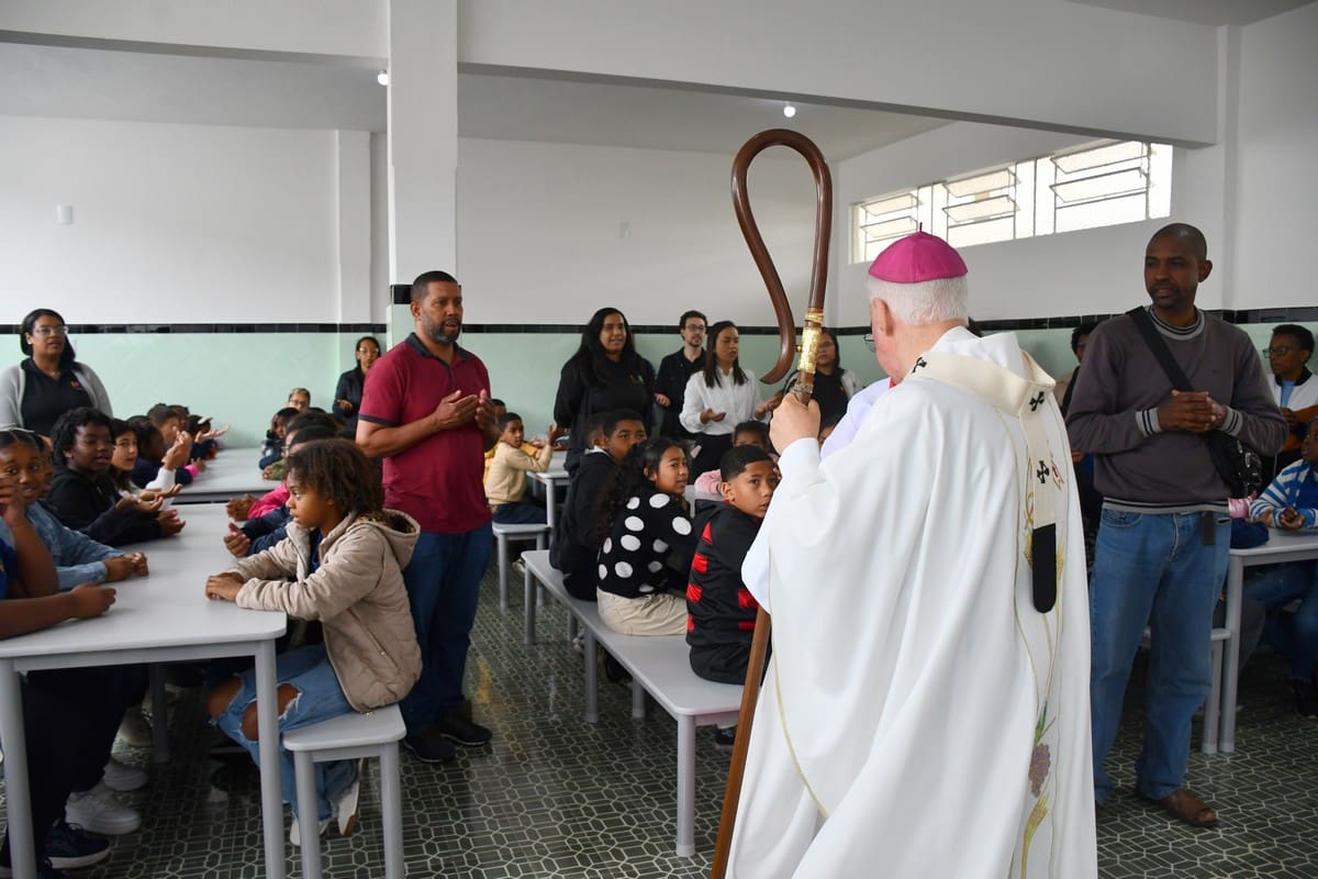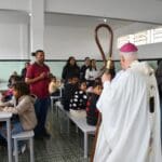 O Arcebispo recebeu seu presente das mãos de uma das crianças atendidas