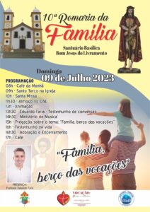 Neste primeiro domingo de julho (9), ocorrerá uma peregrinação ao Santuário Basílica Bom Jesus do Livramento, em Liberdade (MG). Será a X Romaria das Famílias, um momento de promover uma reunião especial das famílias.