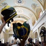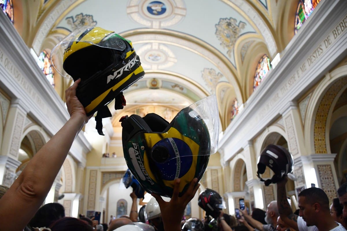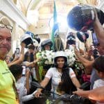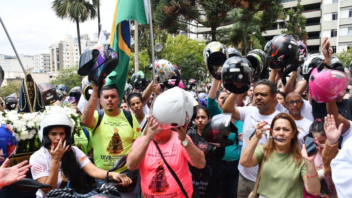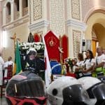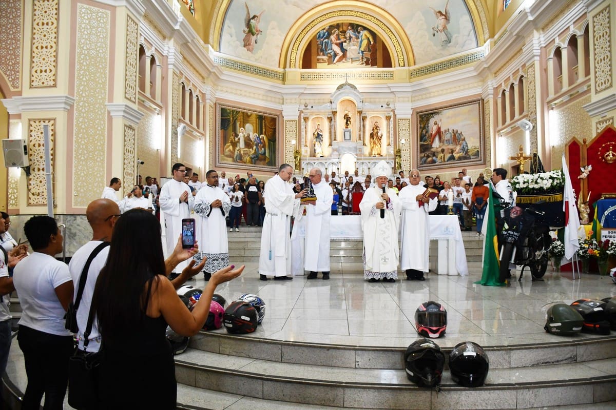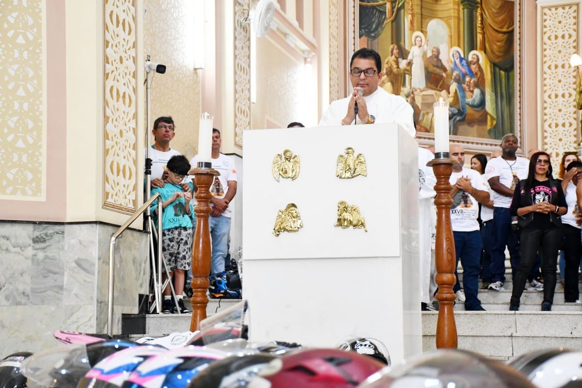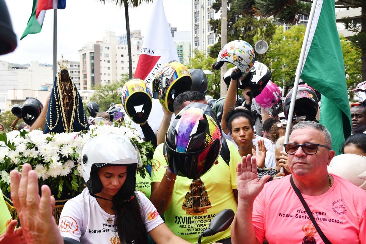 Na moto que entrou com a imagem da Mãe Aparecida também foi feita a homenagem ao motociclista Fausto