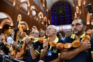 Os alimentos arrecadados na Romaria do Terço dos Homens irão beneficiar 15 obras sociais da Arquidiocese de Aparecida.