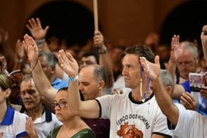 Durante a oração, foram ouvidos os testemunhos de homens que, por meio do Terço, superaram grandes desafios, encontraram a fé e fortaleceram a caminhada no amor de Deus, pela intercessão de Nossa Senhora. Além dos adultos, muitas crianças marcaram presença na Romaria e participaram da Oração Solene do Terço. A cada dezena, os pequenos acompanhavam os representantes de alguns grupos, que foram escolhidos pela coordenação da Romaria Nacional do Terço, para motivarem a oração da Ave-Maria.