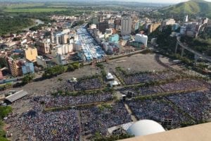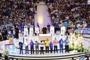 Mais de 80 mil homens se reuniram na Casa da Mãe Aparecida na manhã de sábado (15) para celebrar mais um encontro dos grupos de terço dos homens, em sua 12ª Romaria ao Santuário. Pela primeira vez, a Missa Solene Campal foi realizada na Tribuna Dom Aloísio Lorscheider, às 7h30, possibilitando aos homens mais espaço e segurança para que pudessem celebrar com alegria esse grande momento de oração e ação de graças.