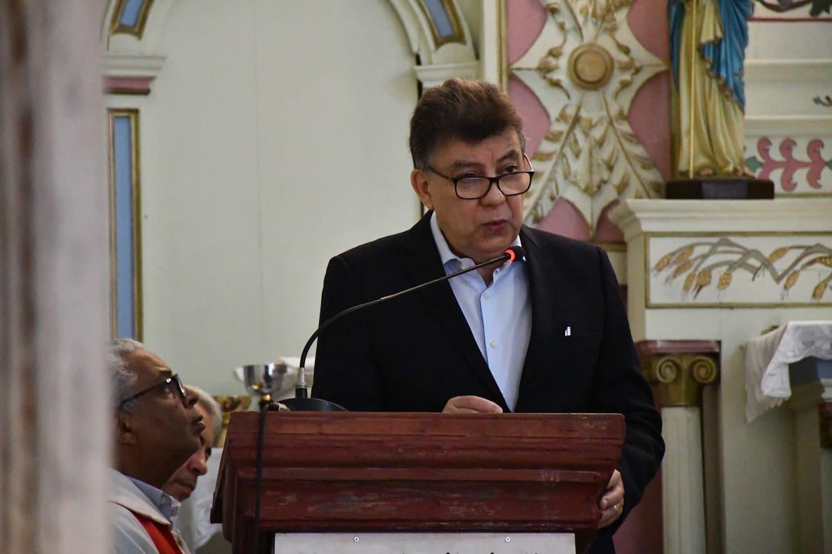 Provedor da Irmandade Senhor dos Passos convidando a todos os presentes para colaborarem com o projeto caritativo