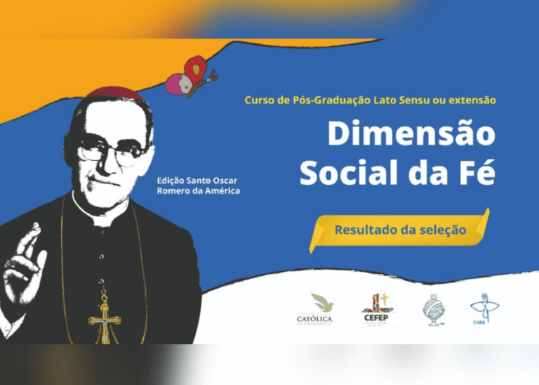 A Comissão Episcopal Pastoral para Ação Sociotransformadora da Conferência Nacional dos Bispos do Brasil (Cepast-CNBB), a Comissão Brasileira Justiça e Paz (CBJP) e o Centro Nacional de Fé e Política Dom Helder Câmara (CEFEP), em parceria com a Universidade Católica de Pernambuco (UNICAP), divulgam a lista das pessoas selecionadas para o curso de Pós-graduação Lato Sensu, ou especialização em “Dimensão Social da fé”, na modalidade a distância, bem como para o Curso de Extensão em Análise da Realidade.