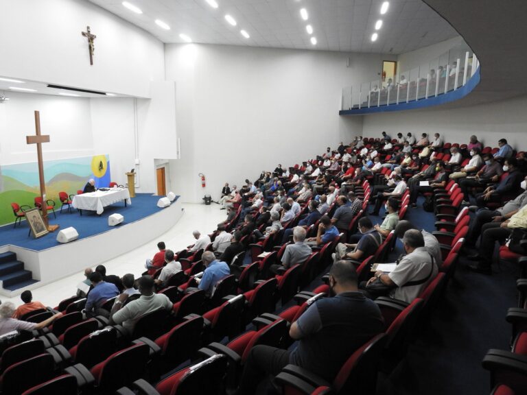 Na manhã dessa terça-feira, 15 de março, o Clero da Arquidiocese de Juiz de Fora reuniu-se pela primeira vez em 2022. O encontro foi realizado de forma presencial, no Auditório Mater Ecclesiae, no prédio da Cúria Metropolitana, onde é possível manter o distanciamento que a pandemia ainda exige. O Arcebispo Metropolitano, Dom Gil Antônio Moreira, conduziu as atividades.