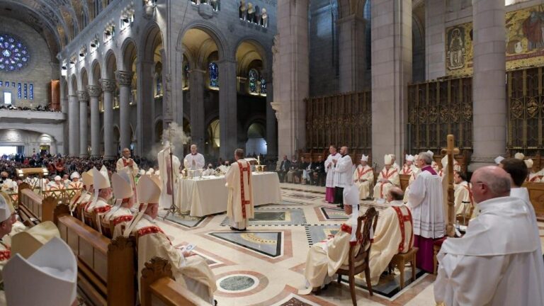 O Papa Francisco celebrou a missa pela reconciliação, nesta quinta-feira (28), no Santuário Nacional de Santa Ana de Beaupré, situado a 30 km de Québec, o local mais antigo de peregrinação da América do Norte.