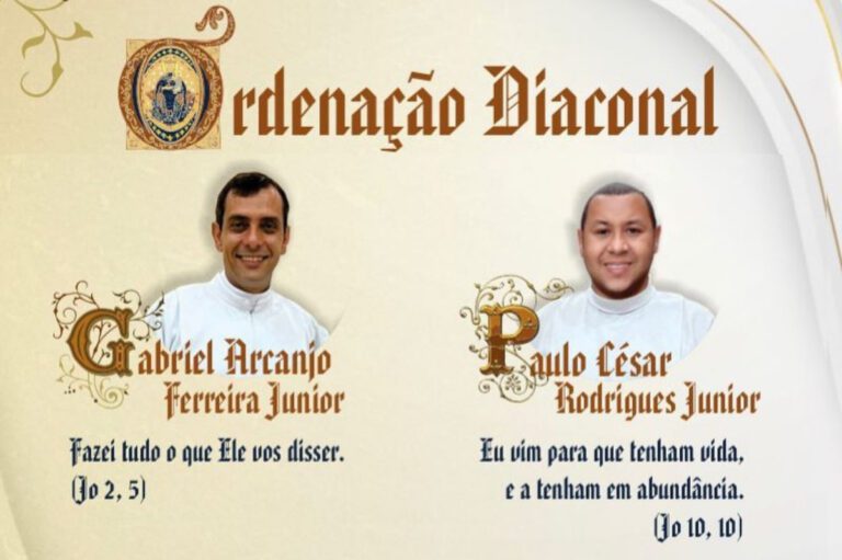 Neste sábado, 28 de outubro, a Catedral Metropolitana receberá mais uma importante celebração arquidiocesana: a Ordenação Diaconal dos seminaristas Gabriel Arcanjo Ferreira Junior e Paulo César Rodrigues Junior. A Missa, marcada para as 9h, será presidida pelo Arcebispo Metropolitano, Dom Gil Antônio Moreira, e contará com a presença de padres e diáconos.