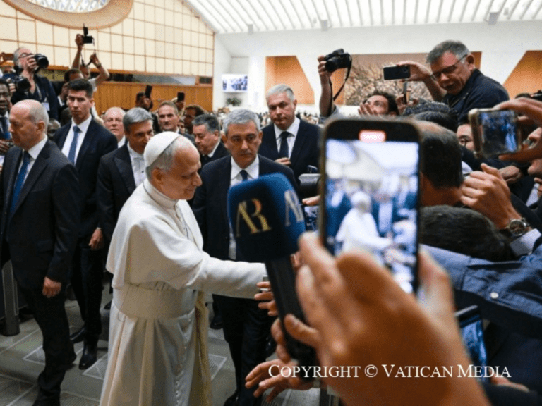 O Papa Leão XIV encontrou-se, nesta segunda-feira (12/05), na Sala Paulo VI, no Vaticano, com a imprensa mundial.