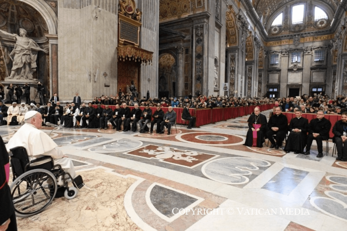 No encerramento, Francisco saudou os presentes na Sala Paulo VI e foi até a Basílica de São Pedro para agradecer a presença também destes fiéis. Com eles, rezou a oração do Pai Nosso, concedeu a bênção e saudou os presentes, distribuindo terços e balas para as crianças.