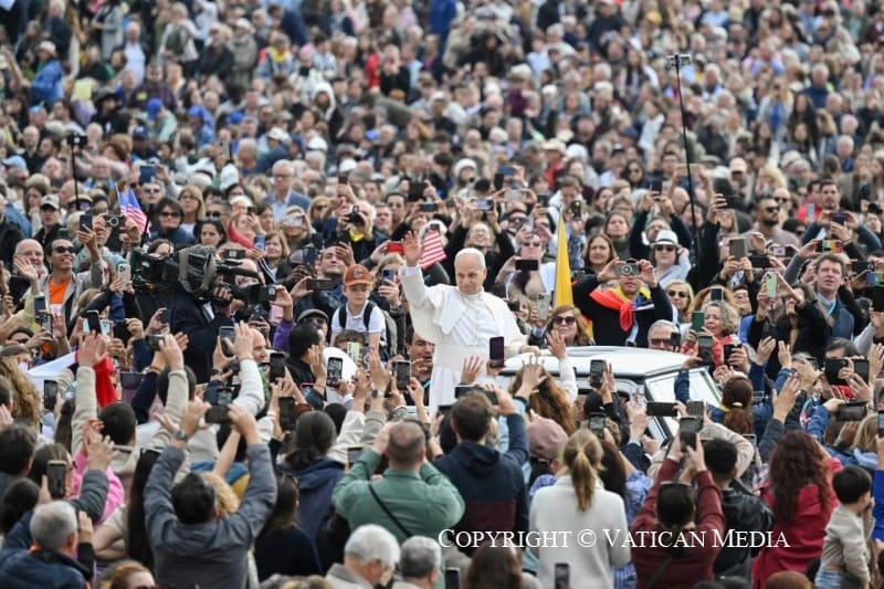 Leão XIV lembrou aos fiéis que Jesus não ressuscitou com palavras, mas com ações, com o seu corpo que conserva os sinais da paixão. A vitória da vida é um dado real, concreto.