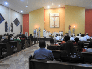 Eucaristia de ação de graças foi presidida por Mons. Luiz Carlos de Paula, o Vigário Geral e Diretor da Escola Diaconal Santo Estevão, concelebrada pelo Pe. José Cisneiros Seabra Ramos, Assessor Espiritual dos Diáconos e pelos Padres da Congregação dos Filhos do Amor Misericordioso.