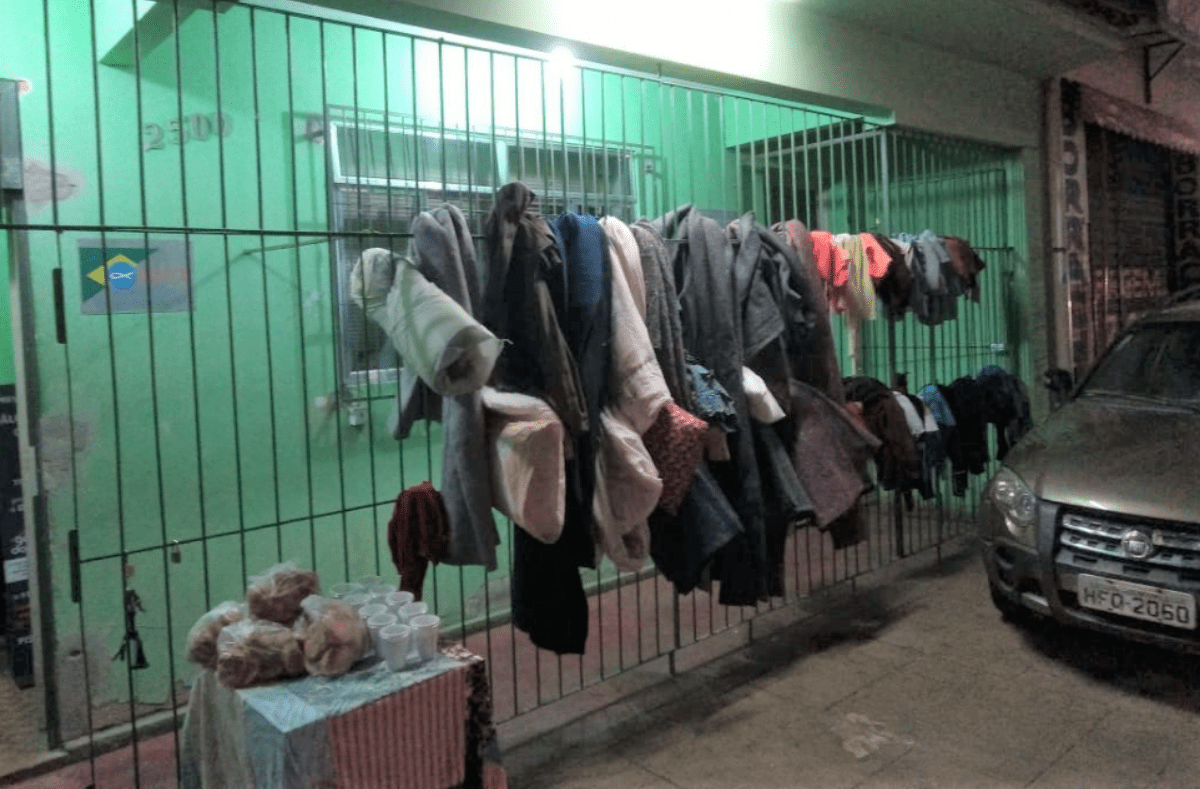 A iniciativa já acontece a algum tempo, de acordo com a necessidade dos moradores em situação de rua. Dessa vez, podem ser encontrados agasalhos, roupas, travesseiros e até papeis higiênicos.