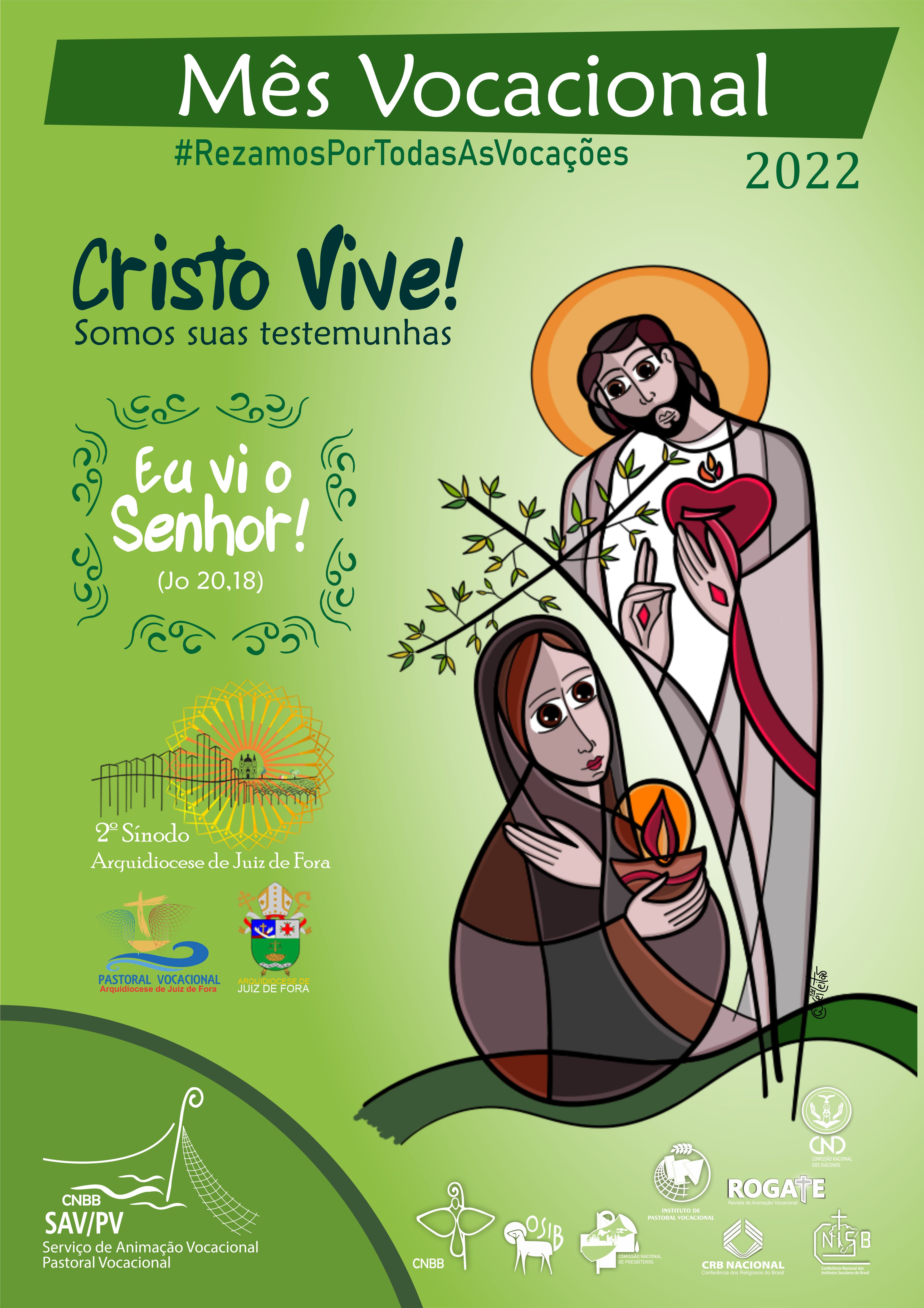 O Mês Vocacional 2022 que tem como tema: “Cristo Vive! Somos suas testemunhas” e lema: “Eu vi o Senhor” (Jo 20,18) está se aproximando. O tema é inspirado na Exortação Apostólica Christus vivit, do Papa Francisco e quer recordar a importância do testemunho da fé, como parte da vocação.