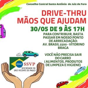 No próximo sábado, dia 30 de maio, o Conselho Central Santo Antônio (CCSA) da Sociedade de São Vicente de Paulo (SSVP) promove o “Drive Thru Vicentino” para arrecadar doações. Sem sair de seus veículos, os interessados em ajudar poderão contribuir com alimentos não-perecíveis e produtos de higiene e limpeza.