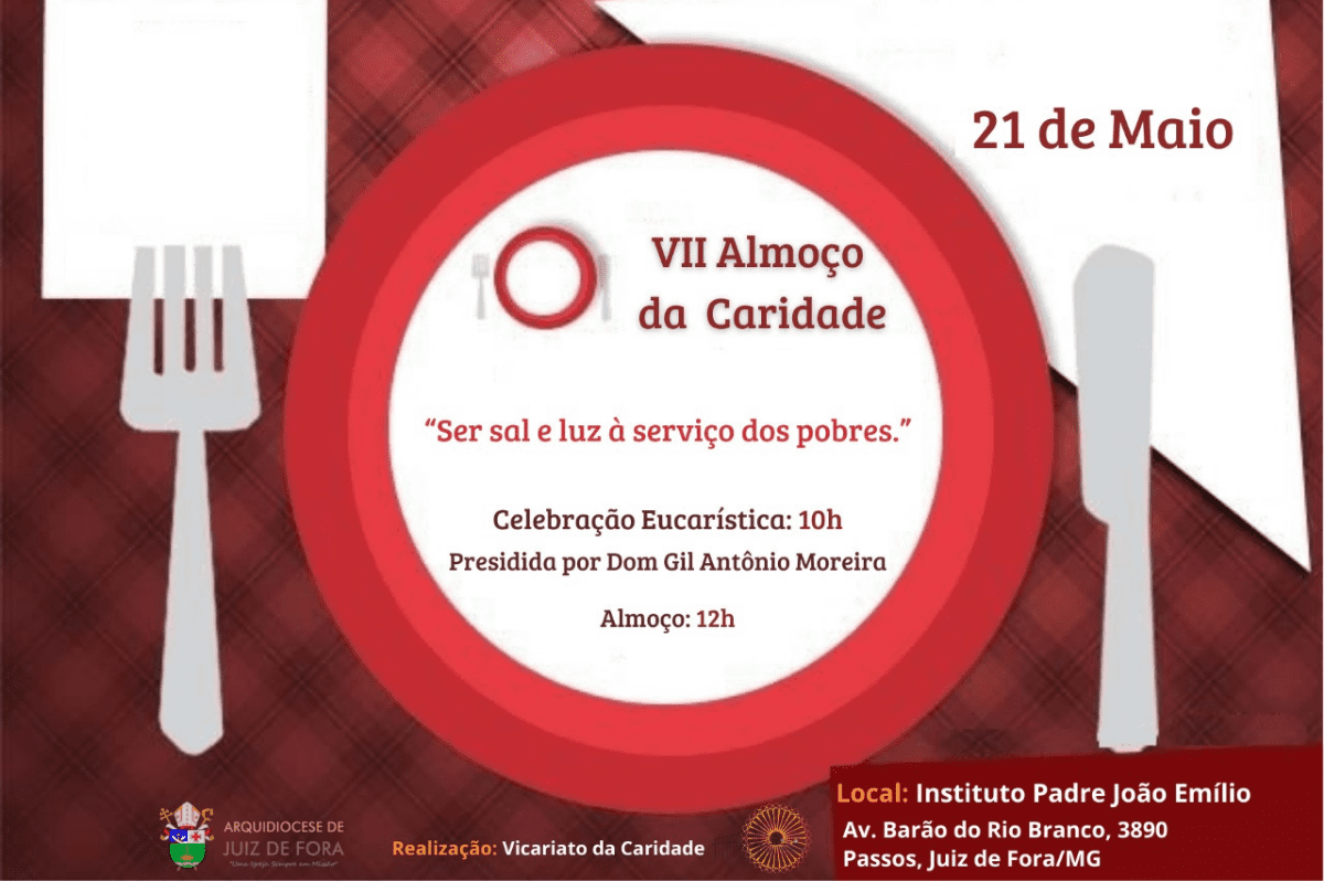 O almoço, será realizado no Instituto Padre João Emílio, também chamado de Colina da Caridade. Ele é destinado a representantes de pastorais e instituições que promovem a caridade no município de Juiz de Fora, aos assistidos pelas pastorais e obras sociais da Arquidiocese. Ao todo foram distribuídos mais de 400 convites.