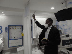 Após a cerimônia o Arcebispo e o Padre Custódio foram guiados pela diretoria para conhecer todos os leitos, que foram aspergidos com água benta.