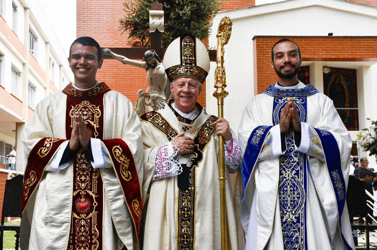 No último sábado, 1º de março, a Arquidiocese de Juiz de Fora viveu um momento de graça e alegria com a Ordenação Presbiteral dos então diáconos Leonardo José de Mello e Miron de Oliveira Messias. A Solene Celebração foi presidida pelo Arcebispo Metropolitano, Dom Gil Antônio Moreira, e concelebrada por membros do Clero Arquidiocesano, no Seminário Santo Antônio, em Juiz de Fora. A ocasião contou com a presença de centenas de fiéis, familiares e amigos, com expressiva participação da comunidade católica de Santos Dumont (MG), terra natal dos neossacerdotes. O momento marcou não apenas a vida dos dois jovens, mas também o coração de todos que testemunharam este sim generoso ao chamado de Deus.