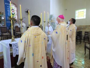 Apenas com amigos e familiares presentes, a celebração foi preparada pela comunidade com carinho e orgulho, pois um filho da terra, criado aos pés daquele altar, estava abraçando sua vocação. O pároco local, Pe. Osmar Bezerra dos Santos, falou sobre a satisfação de acompanhar a ordenação. “É motivo de grande alegria estar reunidos aqui para render graças ao senhor que continua chamando pessoas para servir o povo. O Padre Alex cresceu aqui, serviu a essa igreja… É uma alegria muito grande ver que Deus está agindo no meio de nós”.