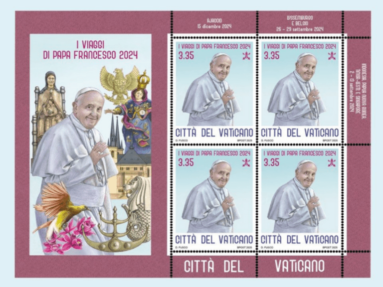 Os países visitados são representados por meio de locais e imagens de culto ou figuras simbólicas, que evocam a cultura ou bandeira local.