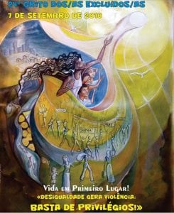No dia 7 de Setembro, data na qual oficialmente se comemora a independência do Brasil, será realizado em todo país o 24º Grito dos Excluídos que, este ano, tem como lema “Desigualdade gera violência: BASTA DE PRIVILÉGIOS!” e tema “Vida em primeiro lugar”. Segundo a Coordenação Nacional, o objetivo é chamar a atenção da sociedade para a questão da desigualdade social, cada vez maior, entre os poucos endinheirados e os milhões de despossuídos. “Este sistema não permite que a vida esteja em primeiro lugar, porque privilegia o capital”, diz a coordenação.