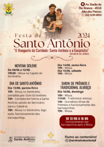 O sacerdote ainda reforçou o convite para todos participarem da festa no loca, que vai até o próximo domingo. “Nesta terça-feira, o padre Paulo César, um jovem sacerdote, que cultivou sua vocação dentro de uma nova comunidade, a comunidade de resgate. Então estamos chamando todas as novas comunidades para poderem estar conosco, celebrando esse dia de Santo Antônio. Depois, dia 12 é a vez dos namorados, dos casais, então nós convidamos você que ama a família, você que quer que a sua família seja semelhante à família de Nazaré, à família de Santo Antônio, que você possa vir.”