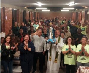 A cada parada, são acolhidos por uma comunidade diferente, geralmente em escolas ou igrejas. Foi o caso de Santa Bárbara do Monte Verde, no segundo dia, onde rezaram, confraternizaram e pernoitaram, acolhidos pela Paróquia Santa Bárbara.