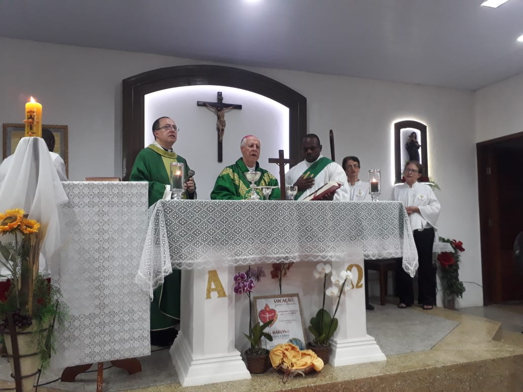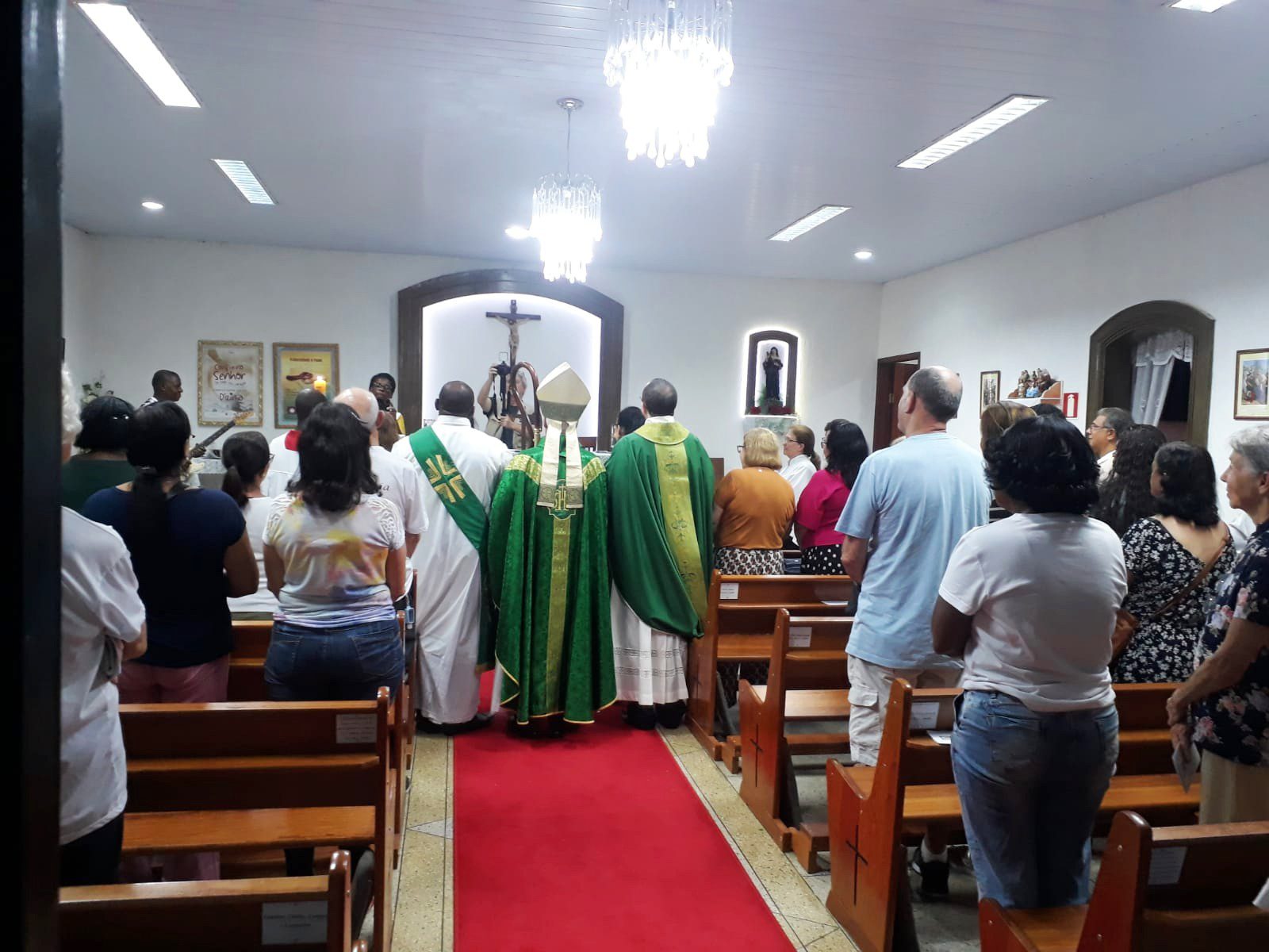 A Eucaristia festiva foi presidida pelo Arcebispo Metropolitano, Dom Gil Antônio Moreira, e concelebrada pelo Pe. Pitágoras de Paula Bandeira. “Tenho em minhas mãos a escritura de doação desse terreno e dessa capela que Jacinta e Rita querem oferecer a Deus, entregando à Arquidiocese de Juiz de Fora. Agradeço a Deus pela generosidade que a gente vê no coração dessas senhoras”, afirmou o Pastor Arquidiocesano.