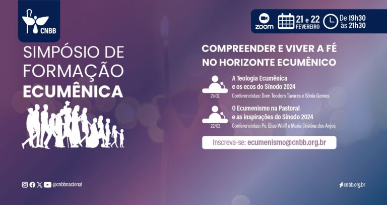 A Comissão Episcopal para o Ecumenismo e o Diálogo Inter-religioso realizará, de modo online, de 21 a 22 de fevereiro de 2024, o Simpósio de Formação Ecumênica com o tema: “Compreender e viver a fé no horizonte ecumênico”.