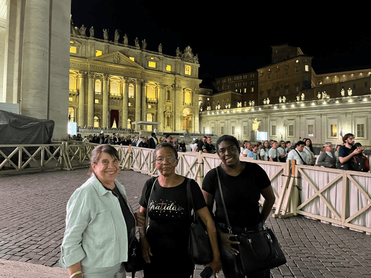 A jornada começou com um convite recebido no dia 1º de janeiro de 2025, feito por Regina Célia de Souza, mãe da Irmã Tatiana de Souza Moreira, Vigária Geral da Casa das Pequenas Irmãs da Divina Providência. “Ficamos muito felizes com o convite e aceitamos de imediato. Era uma oportunidade única de viver a fé no coração da Igreja”, recorda Ângela.