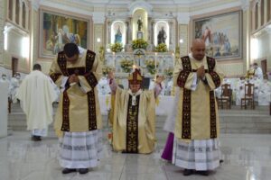 Durante a homilia, Dom Gil falou o quanto é significativa esta acolher os novos diáconos. “A ordenação diaconal de vocês, caros filhos, representa muito para todos nós, pois além de vocês serem dois novos servidores de Deus que chegam para somarem ao clero na construção do reino, também representam, nessa nova fase sinodal, a marca da atenção aos pobres e a reforma da pastoral, dois elementos eminentemente diaconais; foi para isso que os apóstolos instituíram a ordem dos diáconos”, explicou ele, destacando a relação das celebrações.