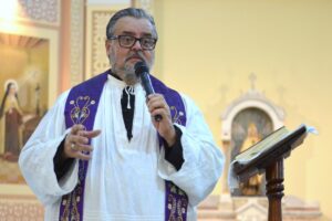 O Sermão do Descendimento foi proferido pelo Padre Everaldo José Sales Borges, Pároco da Paróquia São Pedro. Durante sua reflexão, o sacerdote recordou, ponto a ponto, as partes do corpo de Jesus que foram retiradas da cruz. “O Descendimento da Cruz recorda as várias partes do corpo de Jesus, desde a placa que é colocada acima da cabeça, a coroa, as mãos, os pés, o corpo, tudo isso que está na cruz. E, na medida que acontece a pregação, essas partes vão sendo ‘liberadas’ da cruz, vamos dizer assim. O fio condutor é lembrar que todas aquelas situações que são apresentadas ali no Descendimento da Cruz fizeram parte da vida de Jesus, como as mãos que trabalharam, como os pés que caminharam, como o corpo de Jesus que cuidou do corpo de outras pessoas.”