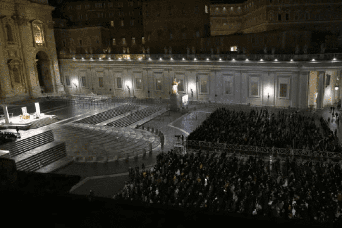 Na mesma Praça onde, em seu primeiro dia como Papa, abençoou o povo e pediu sua bênção, nesta segunda-feira, 24, esse mesmo povo se reuniu para rezar por seu pastor, o Papa Francisco — por sua saúde, por sua recuperação e por seu retorno entre eles. Jovens, famílias, padres, freiras, cardeais residentes em Roma, chefes de Dicastérios e membros da Cúria Romana se reuniram na Praça de São Pedro às 21h (horário local), décimo dia de hospitalização do Papa no Hospital Gemelli, para a recitação do Rosário liderada pelo Cardeal Secretário de Estado, Pietro Parolin, que em sua apresentação pediu orações para que Francisco “possa recuperar sua saúde”.