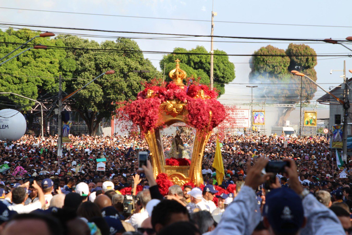 A grande procissão sai neste domingo, dia 09, da Catedral de Belém com destino à Basílica Santuário, erguida no mesmo local em que a Imagem foi achada em 1700, pelo caboclo Plácido. Percorre o Centro Histórico de Belém e alguns dos principais monumentos representativos da história da cidade, como o Ver-o-Peso, Estação das Docas, Praça da República, entre outros. São em torno de seis horas, num percurso de 3,600 Km, em que mais de dois milhões de pessoas devem caminhar em oração, devoção e agradecimento.