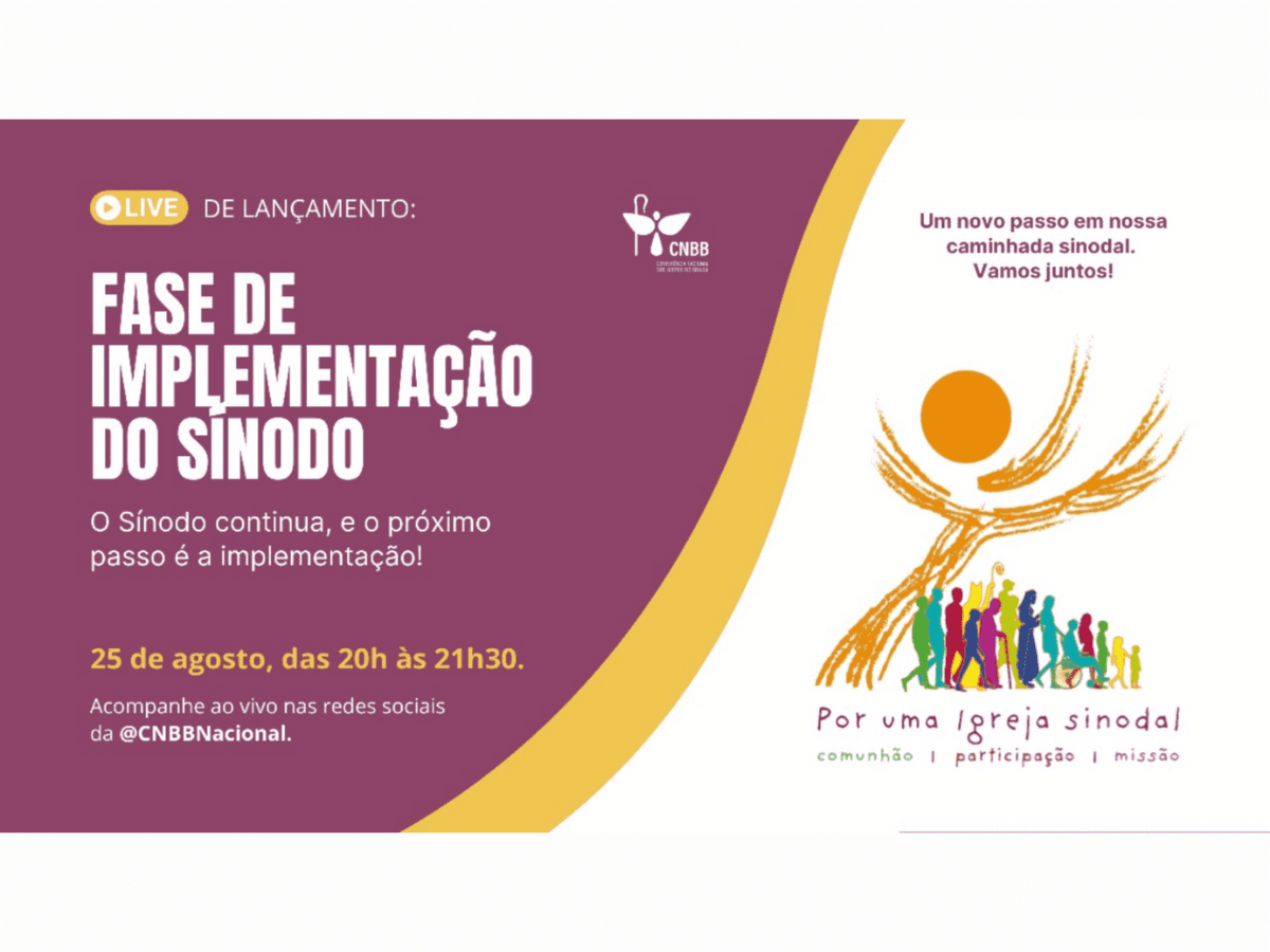 A Conferência Nacional dos Bispos do Brasil (CNBB), por meio da Equipe de animação do Sínodo no Brasil, promoverá uma live sobre a Fase de Implementação do Sínodo. A transmissão acontecerá no dia 25 de agosto, das 20h às 21h30, pelo canal da entidade no Youtube.