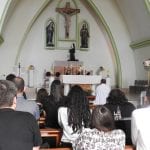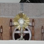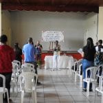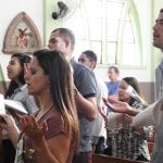 O retiro dos comunicadores foi encerrado com um momento de adoração ao Santíssimo Sacramento, seguido de Celebração Eucarística.