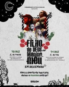 No próximo domingo dia 14 de dezembro, a Paróquia Nossa Senhora do Rosário, localizada no bairro Granbery, recebe o musical “Filho de Deus, menino meu” da Comunidade Católica Shalom. A apresentação acontece após a Missa das 19h. O espetáculo é uma adapta do livro de Maria Emmir Nogueira, cofundadora da comunidade.