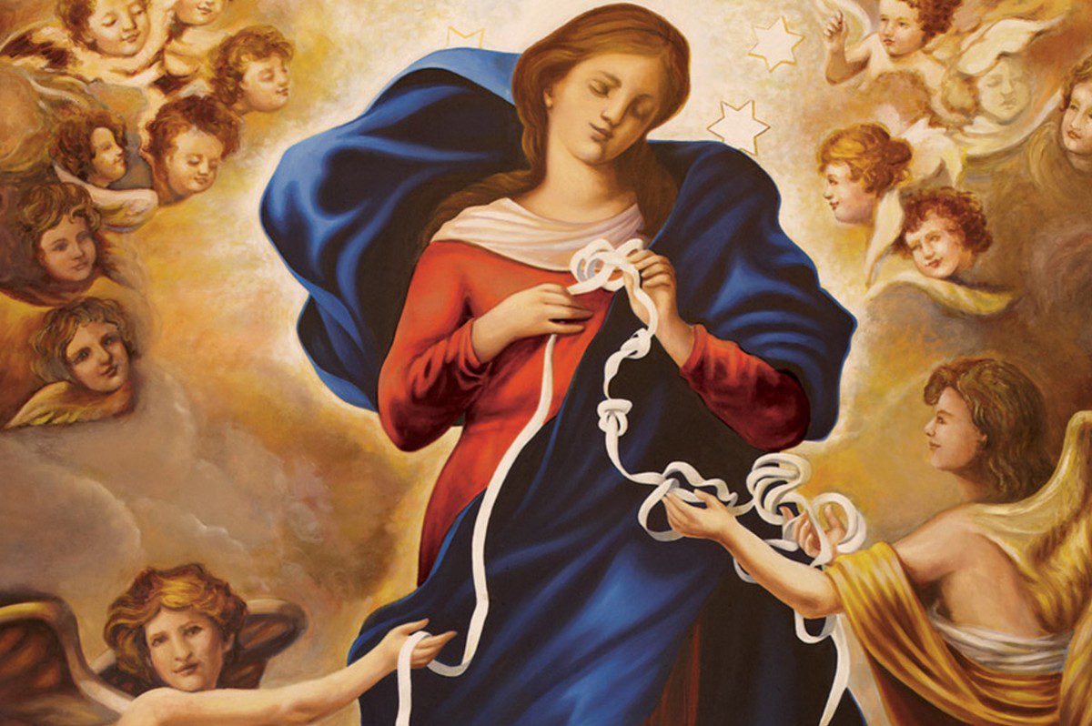 Segundo a tradição, o artista estava enfrentando muitos desafios e, após uma oração fervorosa à Virgem Maria, encontrou ajuda para resolver seus problemas. Em agradecimento, ele encomendou o quadro de Maria Desatadora dos Nós. A imagem se espalhou rapidamente, e a devoção começou a ganhar popularidade, especialmente após a promoção pelo Papa Francisco, que expressou sua própria devoção ao título mariano.
