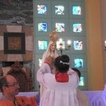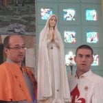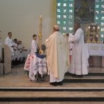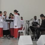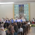 A celebração se encerrou com a coroação de Nossa Senhora, feita com a ajuda dos Arautos do Evangelho e das crianças, responsáveis por colaborar na organização da celebração deste domingo.