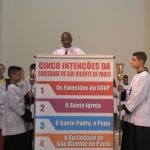 Para o pároco, Padre Rafael Neves, é um momento de alegria. Ele justifica relacionando o trabalho dos Vicentinos e o evangelho, “pensando no evangelho de hoje, aí está a expressão máxima do amor, o cuidado com o outro, de maneira prática. Nós temos que louvar e agradecer a Deus, porque a caridade tem que perpassar séculos e estar muito presente o coração de toda a humanidade. Que a missa de hoje sirva para marcar o amor de Cristo, que se mostra em gestos concretos através das mãos e do coração dos irmãos e na vida da comunidade toda”.