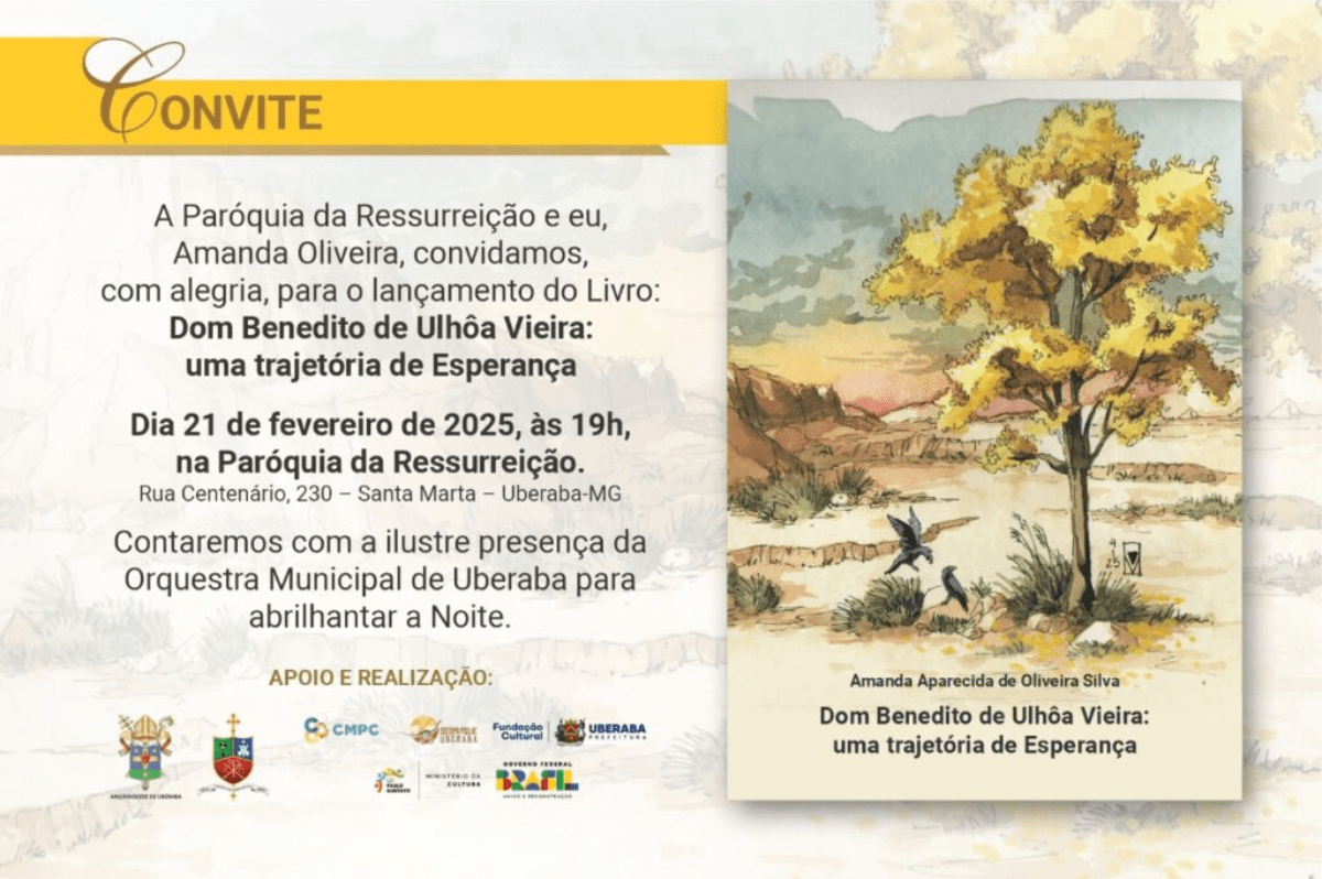 No próximo dia 21 de fevereiro, sexta-feira, às 19h, na Paróquia da Ressurreição, a historiadora Amanda Oliveira, lançará o seu livro “Dom Benedito de Ulhôa Vieira: uma trajetória de Esperança” – fruto da sua Dissertação de Mestrado.