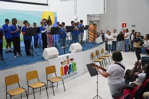 Na manhã do último sábado, dia 7 de junho, ocorreu a tradicional apresentação das crianças do Instituto Padre João Emílio aos pais e familiares. Oito turmas, ao todo 180 crianças entre 5 e 11 anos, mostrando o que tem aprendido na arte da música.