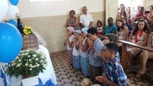 Pelo terceiro ano consecutivo, cerca de 20 crianças da Paróquia São Sebastião, do Bairro Barreira do Triunfo, protagonizam um teatro em homenagem à Nossa Senhora Aparecida. A apresentação de 2019 será realizada nesta sexta-feira (11), às 19h, na comunidade do Dias Tavares, marcando o encerramento da novena em honra à Padroeira do Brasil.