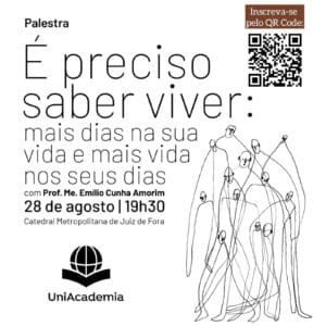 O Curso de Filosofia do UniAcademia – Campus Seminário Santo Antônio promove, no próximo dia 28 de agosto, às 19h30, uma palestra na Catedral Metropolitana. Com o tema “É preciso saber viver: mais dias na sua vida e mais vida nos seus dias”, o encontro será conduzido pelo professor Emílio Cunha Amorim, Mestre em Ciência da Religião pela Universidade Federal de Juiz de Fora e graduado em Filosofia.