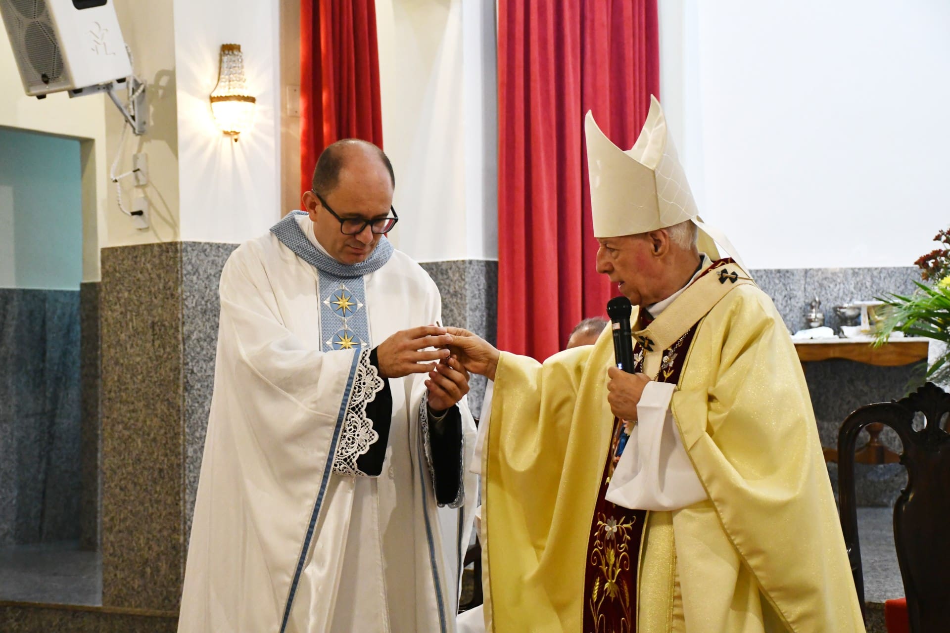 Durante a Eucaristia, Dom Gil explicou aos presentes que os planos de Deus nem sempre são como os nossos, mas as mudanças são feitas de acordo com a necessidade da Igreja. Além disso, falou sobre a função do presbítero. “Dar a posse ao novo pároco significa garantir a perseverança da ação de Cristo numa comunidade. O padre é aquele que vem fazer aquilo que Cristo desejaria fazer, seja liturgicamente falando, seja até administrativamente falando. Aquilo que Cristo pretende para as comunidades. É Cristo que traz a palavra, é Cristo que traz o alimento, que ensina o caminho. Então o Padre tem essa missão de fazer o papel de Cristo na comunidade”.