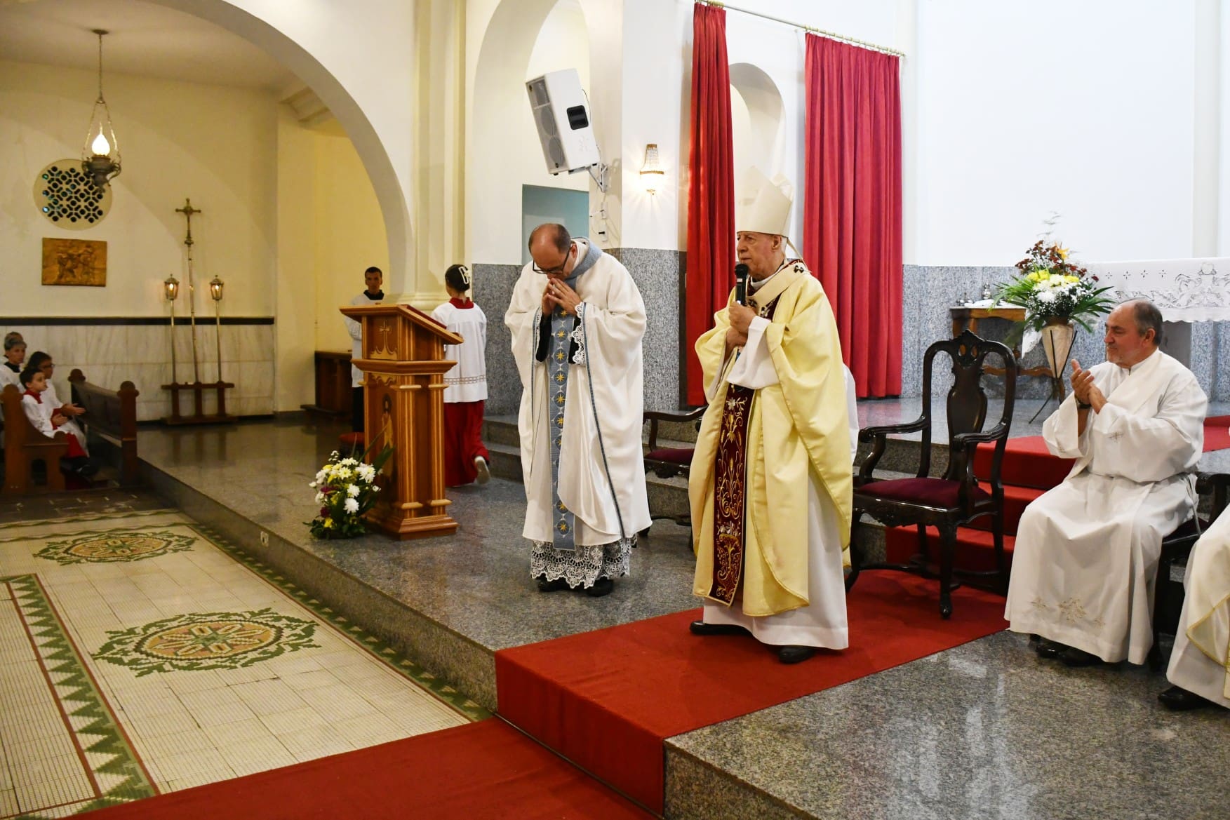 Ele aproveitou a ocasião para comunicar que o diácono Leonardo José, que será ordenado no próximo dia 1º de março, auxiliará o sacerdote empossado tanto na paróquia, quanto no Economato. “Desejo ao Padre Liomar infinita as bênçãos, com a cobertura da bênção de Nossa Senhora, que é a padroeira dessa paróquia, e também ao nosso diácono, o Leonardo José, que logo será a Padre, que Nossa Senhora cubra a ambos com o seu mato sagrado, que eles possam fazer um ótimo serviço pastoral nessa comunidade”.