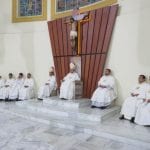 No último dia do Setenário, Dom Gil Moreira, Arcebispo de Juiz de Fora e filho da Diocese de Divinópolis, presidiu a Eucaristia, que foi concelebrada por Dom José Carlos e por todos os padres da Forania de São Bento. Em entrevista, o pastor externou a alegria em poder viver este tempo jubilar. “É uma grande alegria para todos nós que temos alguma ligação com a Diocese de Divinópolis celebrar 60 anos de história. Papa João XXIII, no mesmo ano em que determinou a instalação da Diocese, deu a notícia da abertura do Concílio Vaticano II. Então, a nossa diocese tem uma história bastante bonita porque nasceu e foi construída sob as bases do Concílio. Quero invocar de Deus uma bênção especial para Dom José Carlos, todos os seus padres e todo o povo da Diocese de Divinópolis, neste momento tão sublime, jubilar, agradecendo o trabalho dos que vieram antes de nós, pedindo pelos que trabalham hoje e também pela perseverança do futuro nessas mesmas linhas que constituem a construção dessa Igreja”.