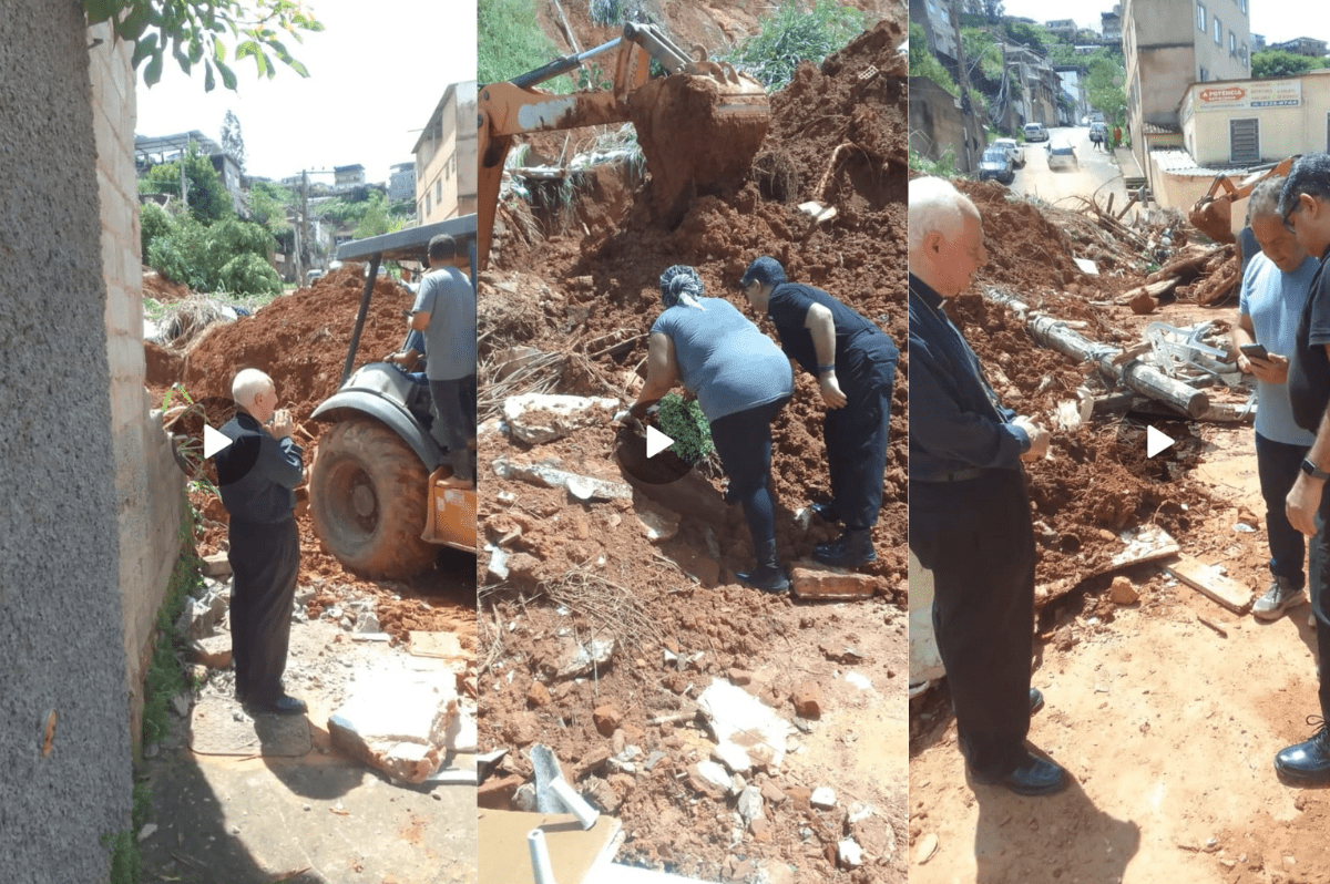 Ainda pela manhã, Dom Gil esteve no bairro Tiguera, acompanhando os trabalhos de busca por vítimas dos deslizamentos e oferecendo apoio às famílias enlutadas.