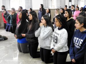 A Missa de encerramento do Retiro do Acampamento Juvenil aconteceu no Instituto Padre João Emílio, na noite de domingo (23), sendo acompanhada pelos encontristas, seus pais, amigos e por outras pessoas que já participaram do evento.