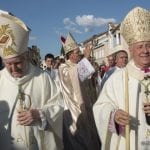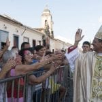 Concluindo o Rito Canônico, foi iniciado o cortejo até o Largo do Rosário. Do lado externo da Catedral, muitos aplausos e gritos do povo ao novo pastor. Nem a alta temperatura e o forte calor vindos do sol puderam afastar a população. Faixas, bandeiras de pastorais e movimentos, enfim, muitas manifestações de carinho e acolhida.