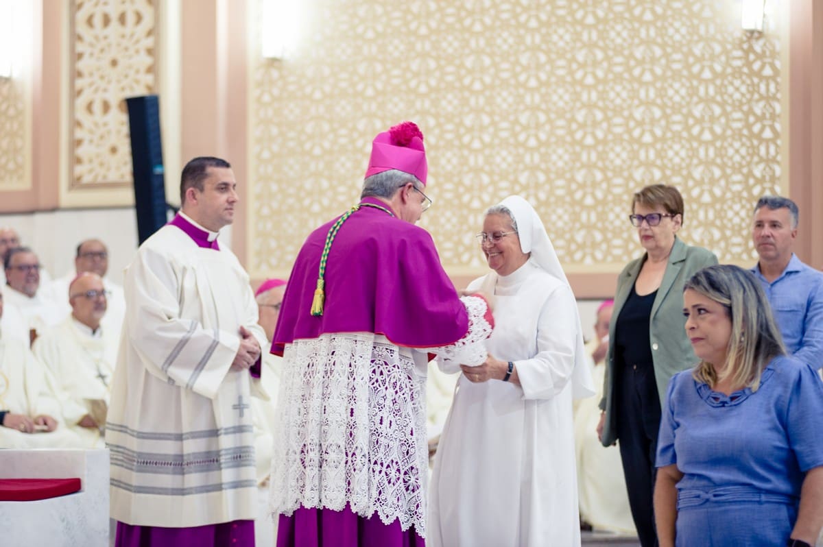 Diversos bispos participaram da Celebração, expressando comunhão eclesial. Entre eles, Dom João Justino de Medeiros Silva, Arcebispo de Goiânia e primeiro vice-presidente da CNBB, antigo aluno do Seminário Santo Antônio. “É muita alegria estar aqui, agradecido pelo trabalho tão missionário da parte de Dom Gil, que esteve 17 anos à frente da Arquidiocese. Quando ele chegou, eu estava aqui, em 2009, e hoje participo da acolhida de Dom Marco Aurélio, que vem para assumir essa nova missão.” Ao recordar a tragédia recente causada pelas chuvas, completou: “A cidade passou por momentos tão difíceis, mas a marca dessa Celebração de hoje ajuda a entender que a missão continua para todos: a missão da Igreja, a missão de cada família, de cada membro dessa sociedade”.